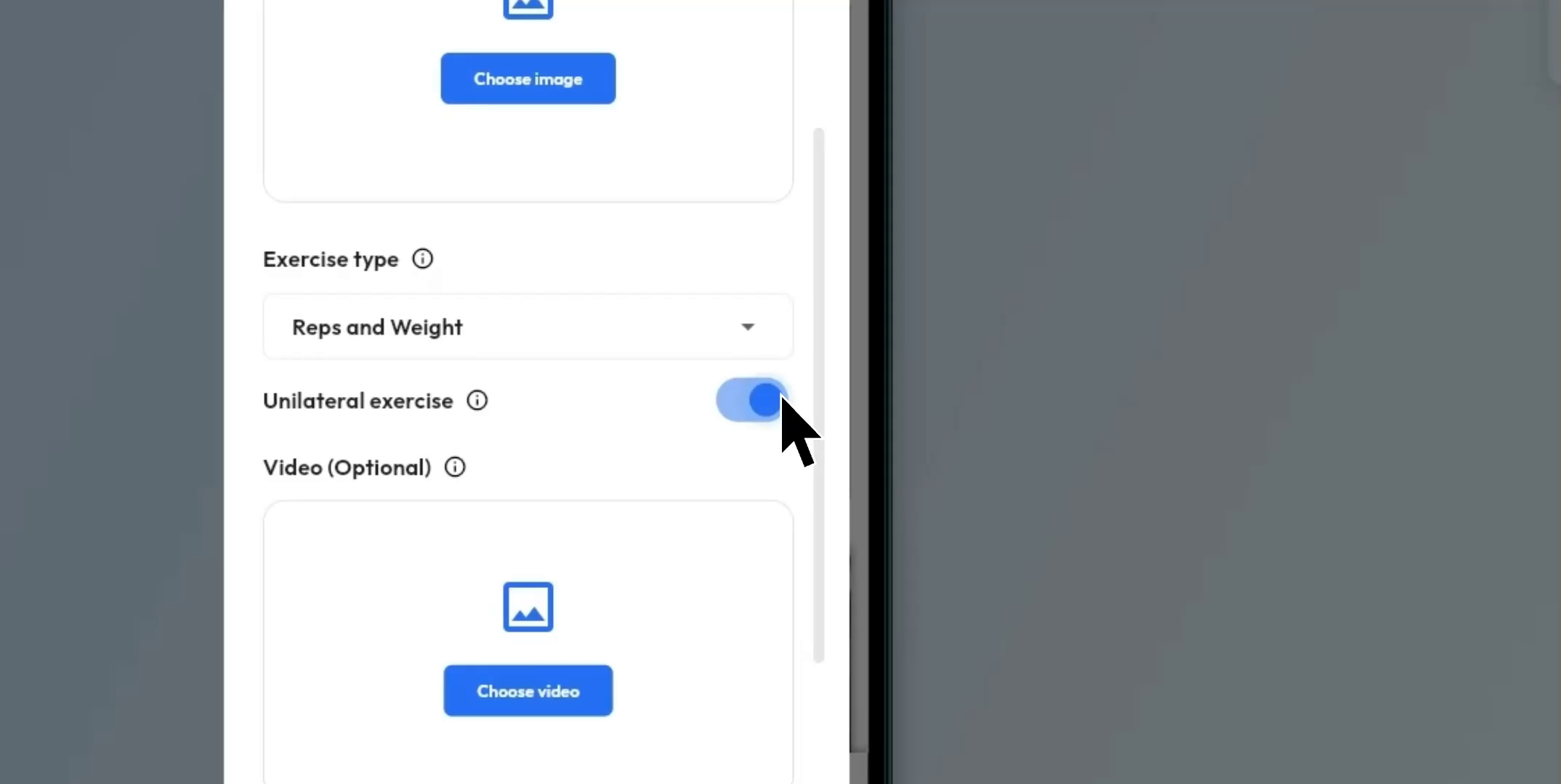 3. Turn on Unilateral Exercise if it is performed one side at a time.