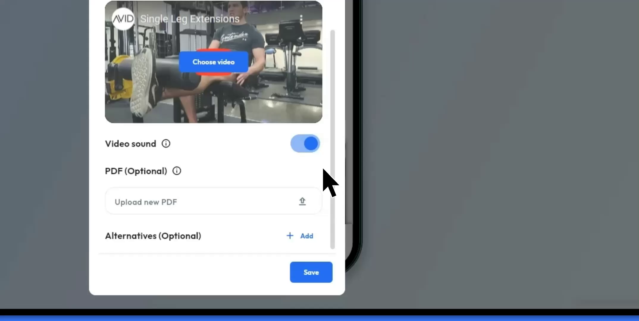4. Upload an instructional video from your computer or add a YouTube/Vimeo link. The display thumbnail will be generated automatically. Switch off Video Sound if you prefer the video to be muted.